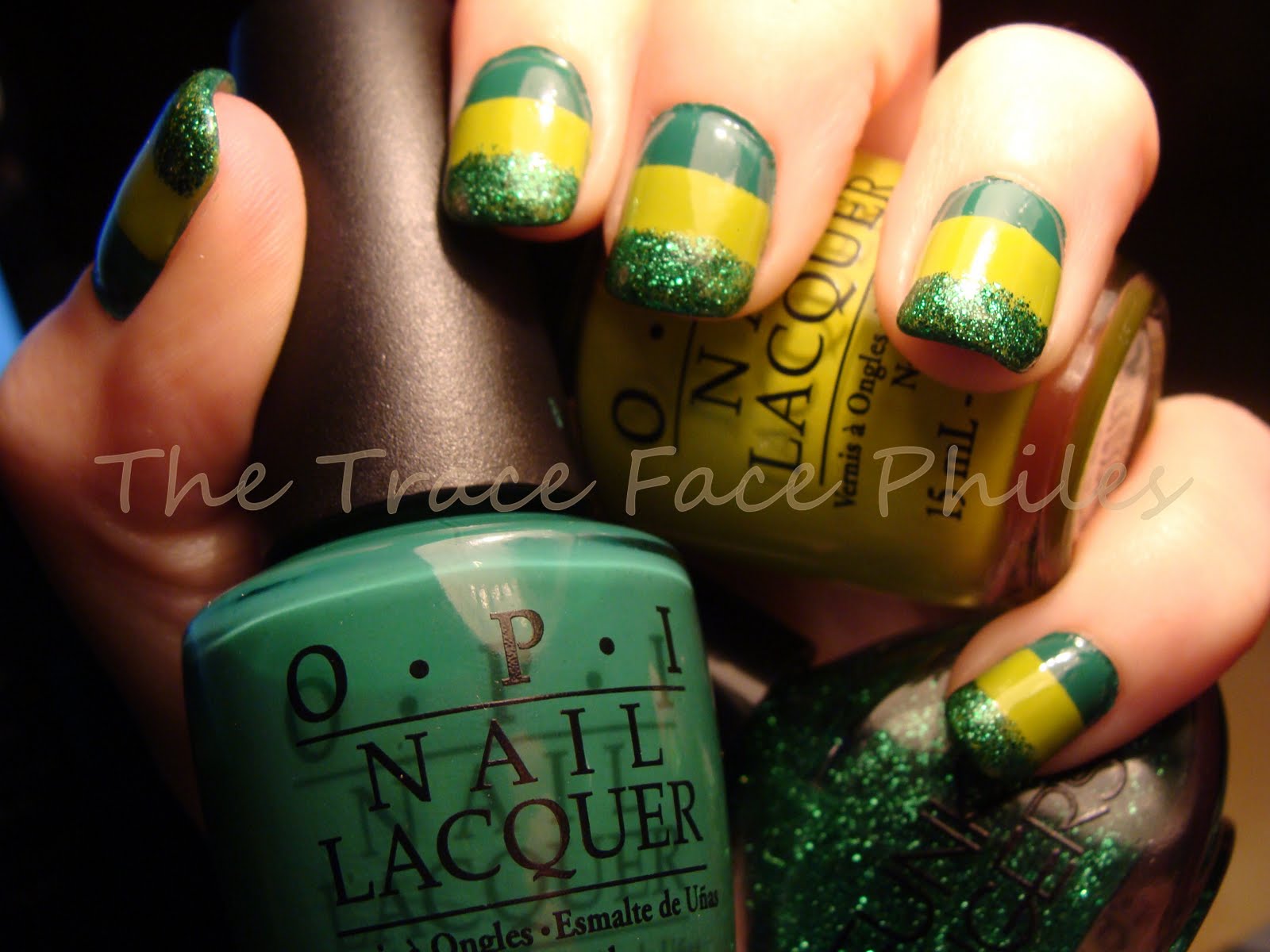 This was for St Patrick's Day. Another tape mani, using OPI Jade is the New Black, OPI Who the Shrek are You and Funky Fingers Erin.