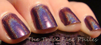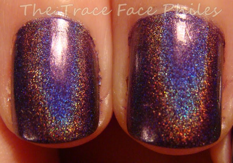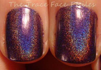 OMG is a dark purple with a strong holographic effect. The bottle looks a bit deceiving, but once the polish dries on the nail, OMG!..(perhaps that's why the collection is named OMG?) I applied 2 coats of LOL over 1 coat of Orly Calcium Shield. These photos are without top coat. I was afraid if I applied top coat, it would weaken the holo effect. I wanted to take photos while it still looked awesome. I did end up using top coat afterwards, at first the holo went away but it slowly came back! HOORAY!!